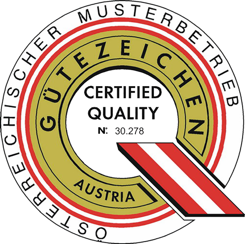 - Seit 2004 nach ÖNORM EN ISO 9001:2015 zertifiziert und Träger des österreichischen Gütezeichens